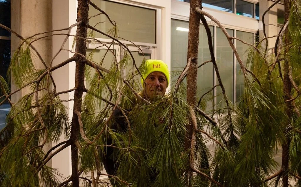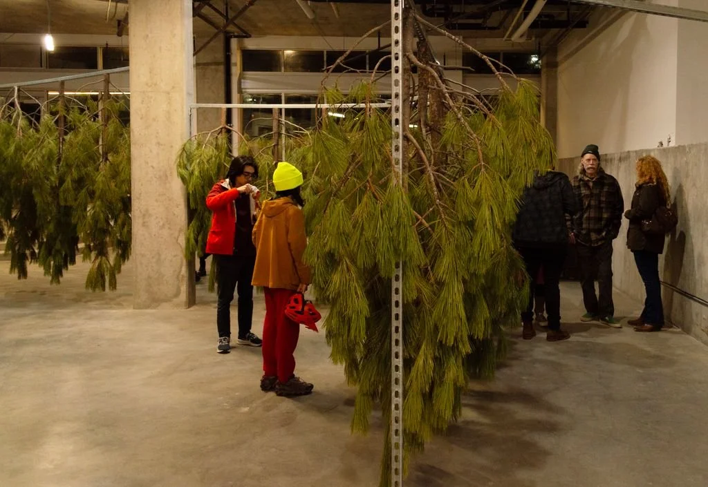 This project is ephemeral, site specific, and time-based. As the trees hung over a span of a few months, they began to dry, change color, draw sap, and lose needles.